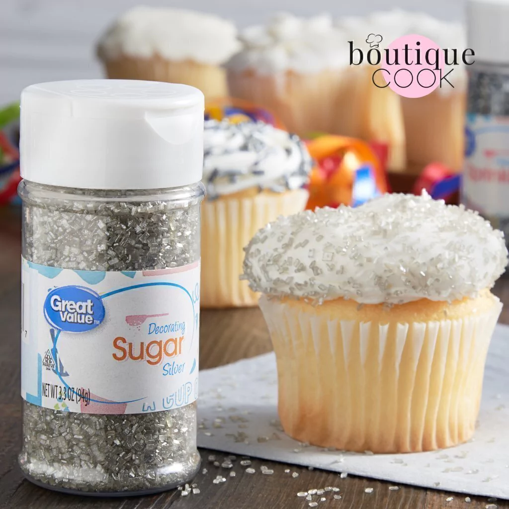 Azúcar gruesa coloreada en tonos plateados, de la marca estadounidense Great Value. Ideales para dar el toque final a preparaciones horneadas y postres de todo tipo. Utilizalos sobre tus cupcakes, tortas, galletitas, helados, y todo lo que te puedas imaginar - perfecta para cumpleaños, aniversarios, bodas y celebraciones de Año Nuevo y navidad. Indispensables en cualquier cocina, tanto para cocineros amateurs como profesionales gastronómicos, dan a cualquier creación un toque elegante y distingido.