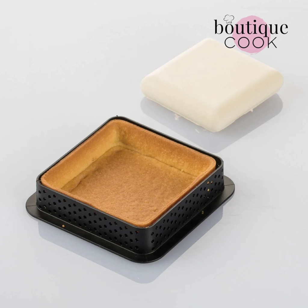 Aros de termoplástico indeformable, antiadherente, inoxidable y aptos para horno hasta 180ºC (para la realización de la base). Estos anillos o aros permiten una cocción homogénea y tienen una gran estabilidad térmica.
