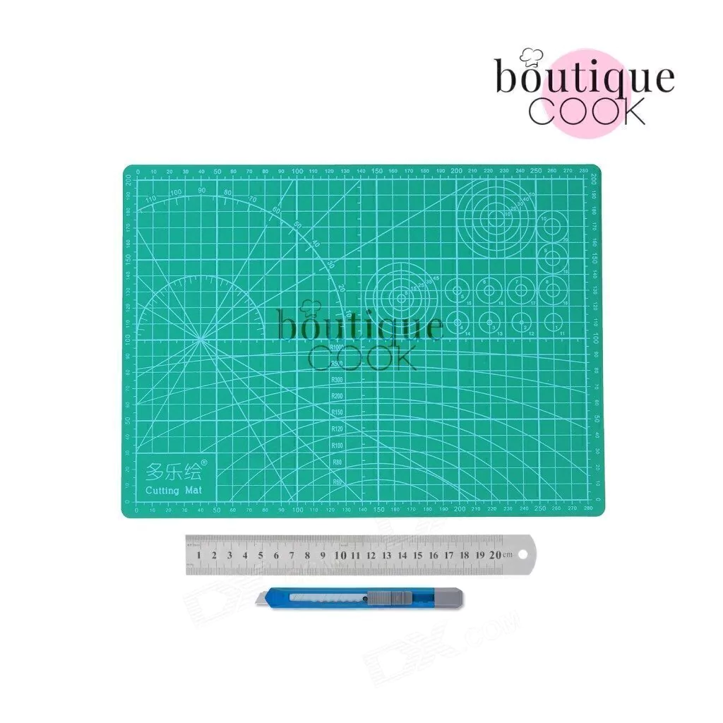 1 plancha serigrafiada en ambas caras, en forma de cuadrícula, para correcta alineación al cortar. Superficie reforzada, no se marca con facilidad, protege la cuchilla del cutter ó bisturí. Utilizadas para collages, Scrapbooking, Reposteria y mucho mas! Espesor: 3mm – Antideslizante. Apta para realizar cortes en ambas caras de la plancha. Tamaño A4 (30x22cm).