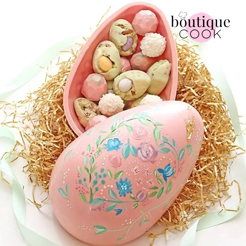 El molde consta de dos mitades, derecha e izquierda, que se mantienen unidas mediante pequeños broches que se posicionan en los extremos del molde. Para realizar la figura, rellenar una de las mitades con chocolate derretido templado (la cantidad de chocolate que utilices dependerá de si querés una figura totalmente compacta, o realizarla con centro hueco; de ser la segunda opción, asegurate de utilizar suficiente chocolate para crear una capa sólida y resistente), luego cerrar el molde juntando ambas mitades y sujetar con los ganchos. Antes de dejarlo secar, mové el molde de tal manera que toda la superficie esté cubierta y no queden partes de la figura vacía (recomendamos, además, mover también el molde durante el tiempo de solidificación del chocolate, para que el chocolate no se acumule en la base de la figura y cree una desproporción con respecto al resto de las caras). Podés dejar solidificar a temperatura ambiente o en la heladera por algunos minutos. Una vez seco, desmoldar con cuidado y retirar la figura del molde.