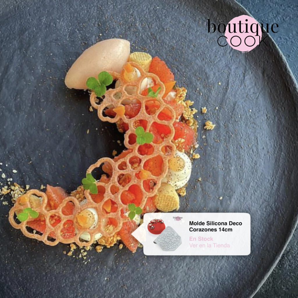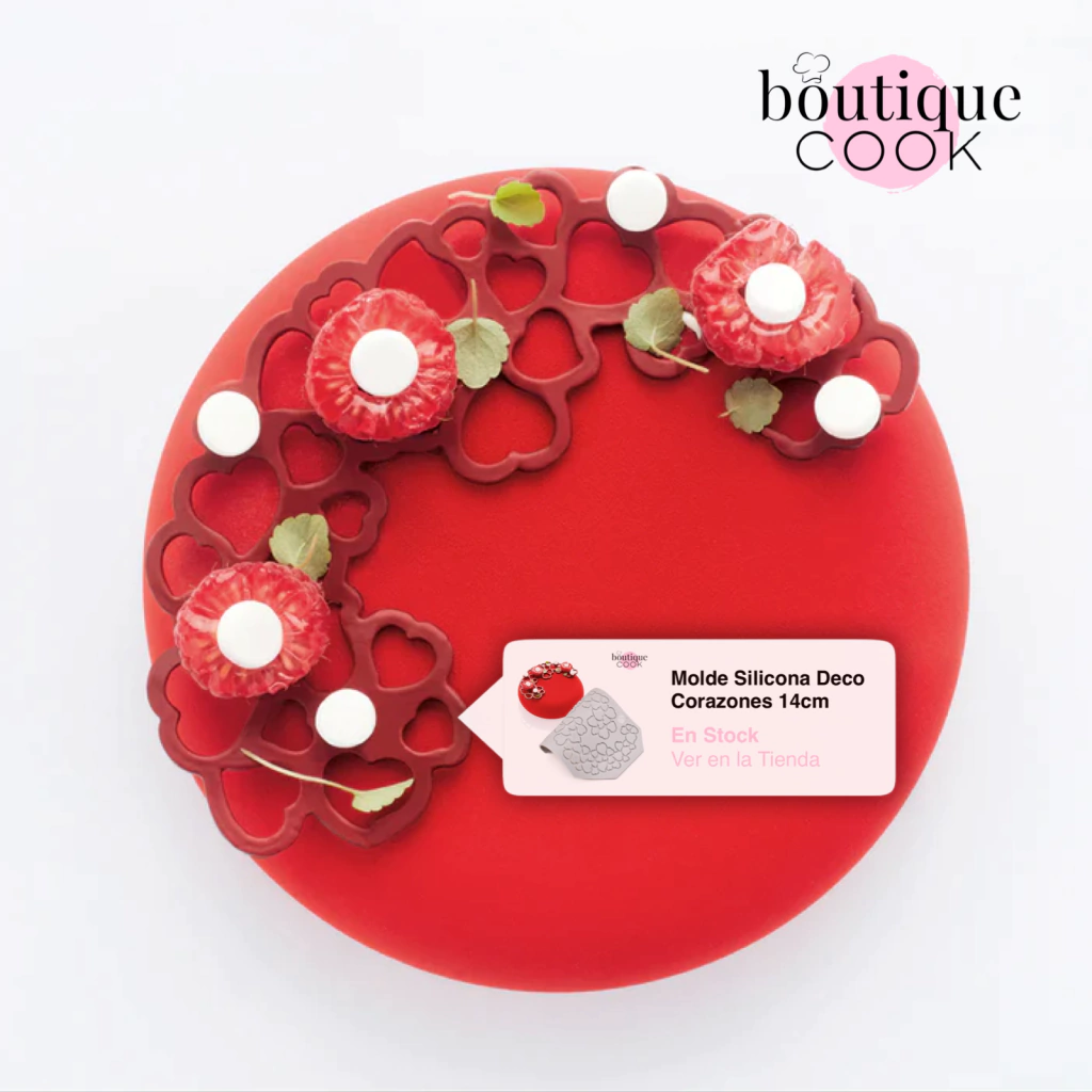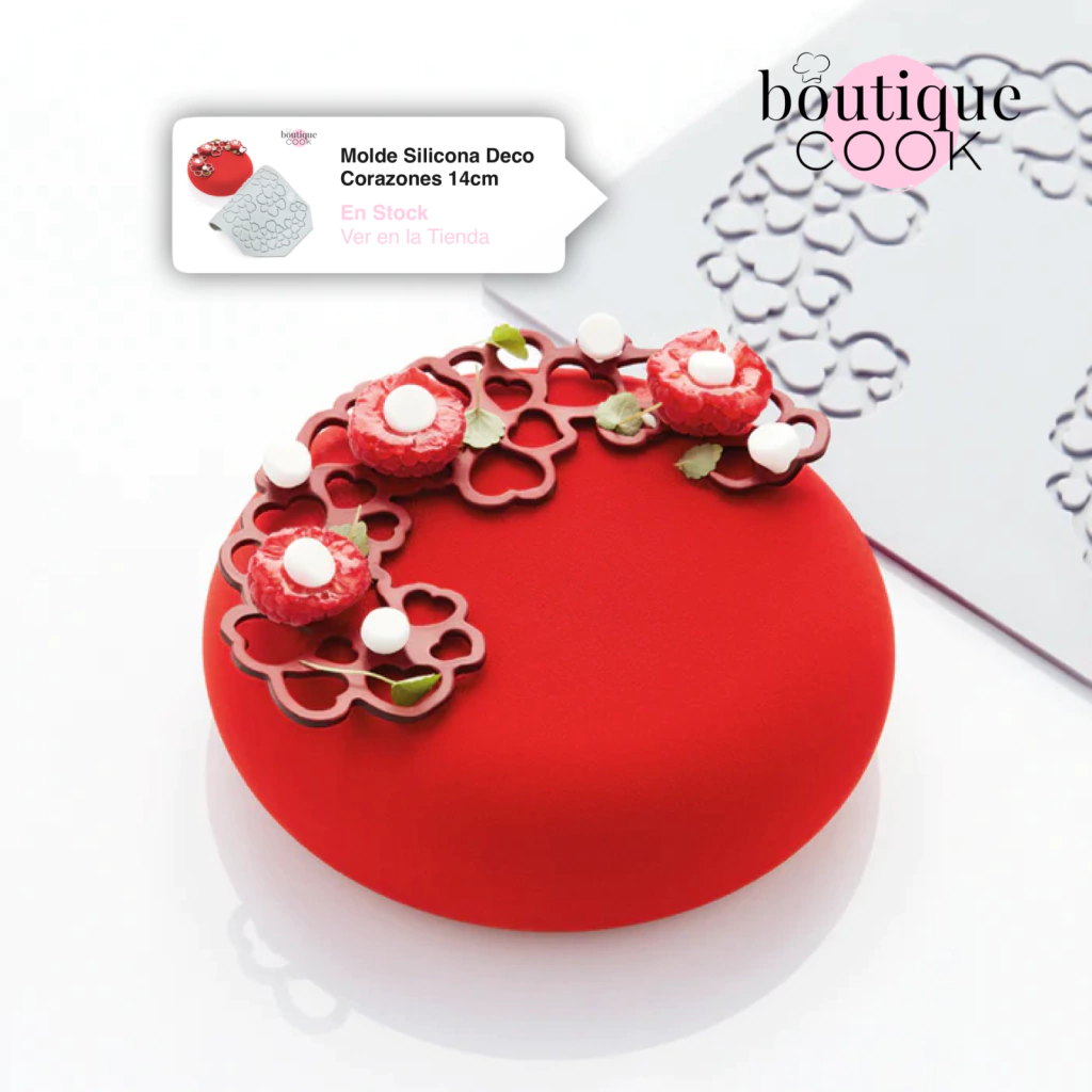 Inspirado en la línea de moldes Pavodecor de Pavoni, este modelo de corazones es perfecto para la decoración de entremets y tortas.