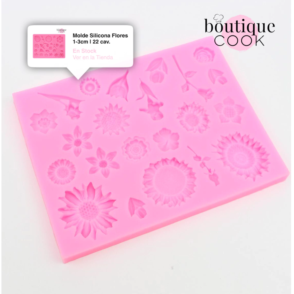 Molde fabricado en silicona de excelente calidad para realizar un surtido de flores y hojas, apto para utilizar en contacto con alimentos. Ideal para temáticas primaverales, decorar galletitas, tabletas de chocolate, postres y tortas. ¡Útil para tener siempre a mano! 🌺🌸🌼🌹💐