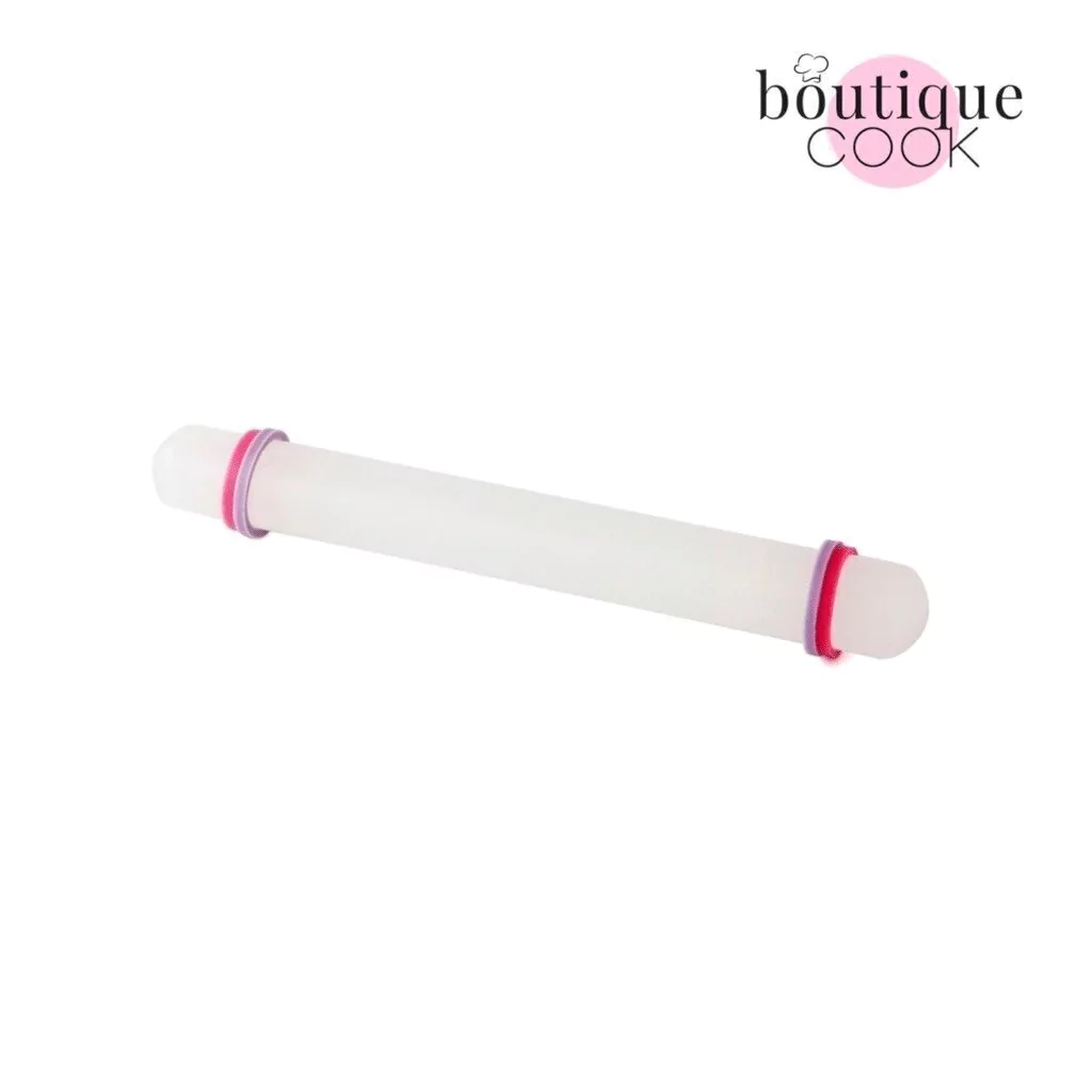 Rodillo liso y totalmente antiadherente, con anillos de medidas de silicona intercambiables que posibilita el estirado y nivelado perfecto en distintos grosores. Ideal para extender pequeñas cantidades de masas, pastas, como también para trabajar con porcelana fría y arcilla.